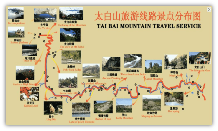 太白山国家森林公园位于陕西秦岭北麓,横跨眉县、太白县、周至三县,是我国著名的秦岭山脉的主峰,也是我国大陆东部的第一高峰,海拔3771.2米。它以其高、寒、险、奇、秀,富饶和神秘的特点闻名于世,称雄华夏。