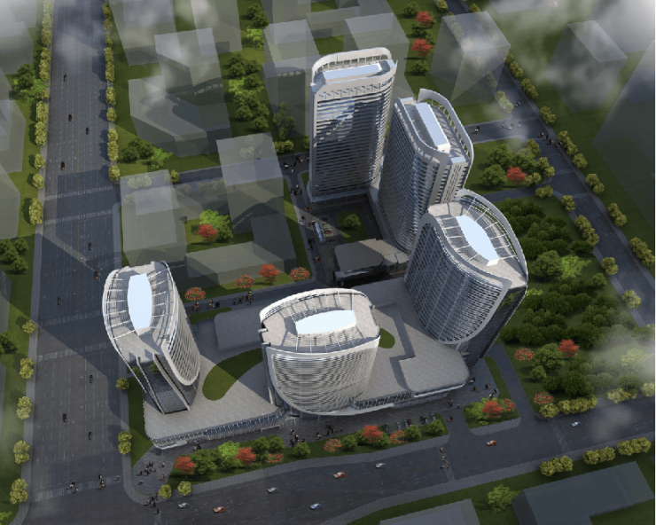 主要建设内容包括:西办公楼、酒店、东办公楼、办公楼D、办公楼E及沿街商业裙房。