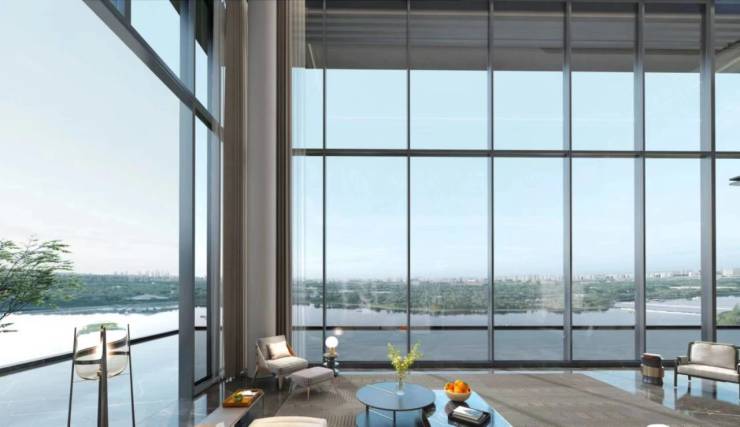 项目整体规划因地制宜,借助长安公园地块天然优势将建筑群落斜竖排布,依湖而建,营造四层低密大境