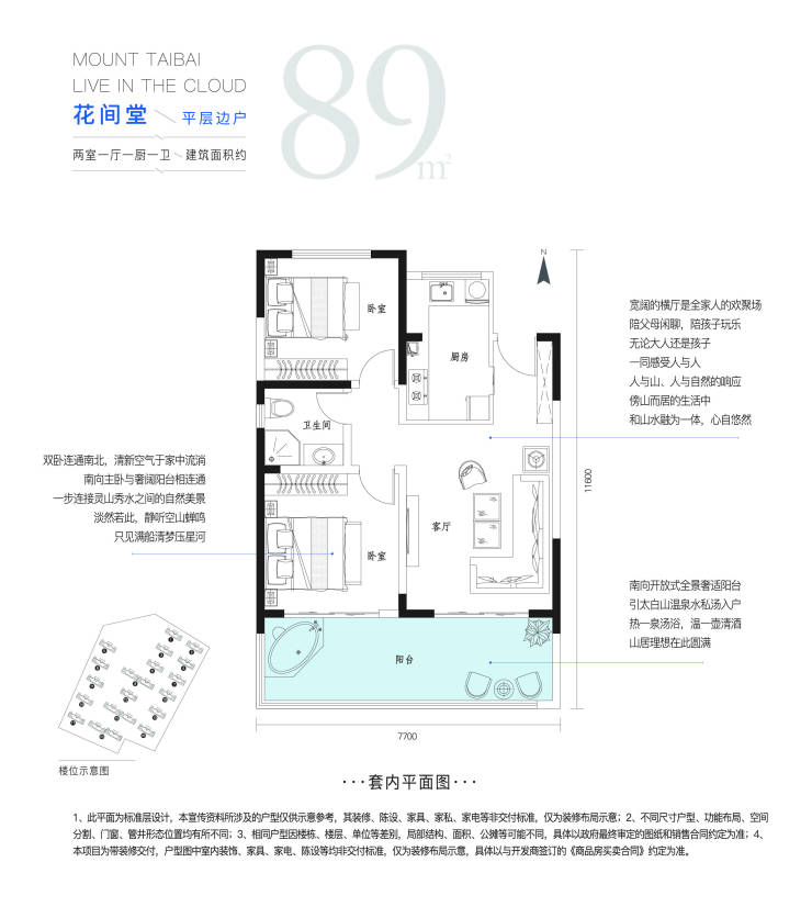 巨幕阳台:太白山同类型产品最大尺寸阳台,进深2.4米,开间7.1米~7.7米