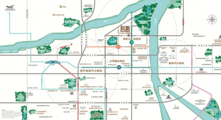 1.生态:项目毗邻未央湖、世界水岸灞河、渭河三大水系,更有西安浐灞湿地公园、未央湖公园、西安泾渭湿地省级自然保护区、渭河城市运动公园、广运潭公园等生态公园环伺。