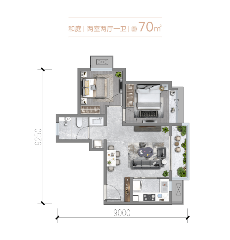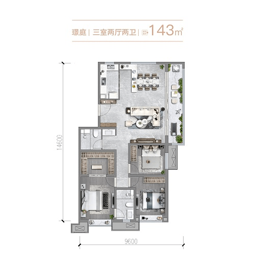 面积区间:建筑面积约70-143㎡健康品质舒居