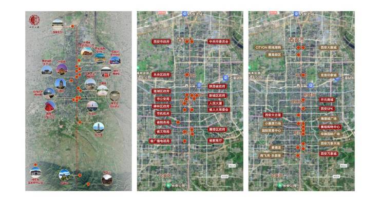 政务之轴:千年西安的行政高地贵承历史古都规划礼制,中轴线汇聚陕西省政府、西安市集各政府部门及行政机构,是城市政务活动的核芯地带