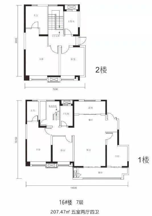 南、北朝向,5室2厅4卫,建筑面积207.47㎡