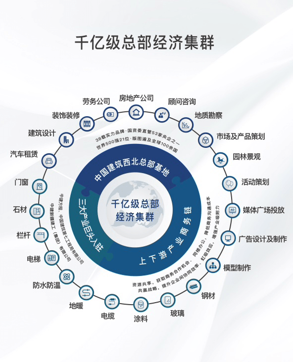 6⃣中建西北总部,建筑龙头入驻引领上下游产业链企业群,千亿级集群效应,优化商务交流产业互动成本