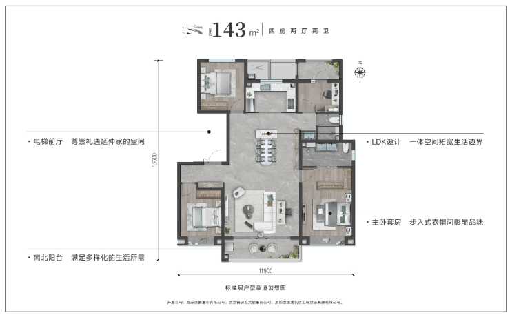 ►层峯之序(小高)——建筑面积约143㎡四房两厅两卫——