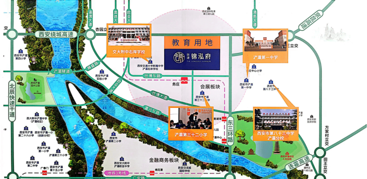 2、教育:小区自身配备品牌幼儿园,西侧约800米为交大附中浐灞右岸学校,周边还有浐灞第一中学,铁一中滨河学校,市五十七中,浐灞欧亚中学等。