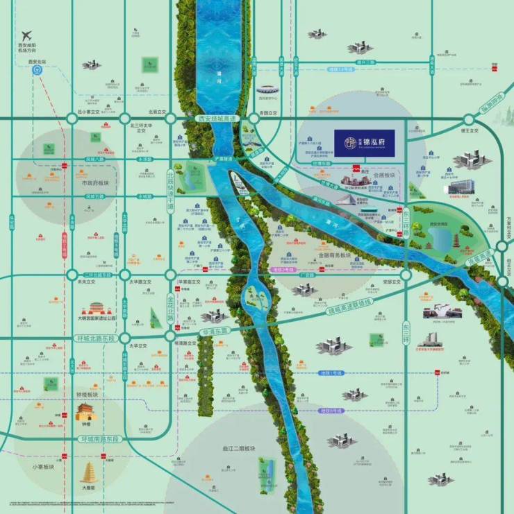 陕建锦泓府,项目位于世博东路与锦堤一路交叉口东北角,隶属于浐灞生态区。