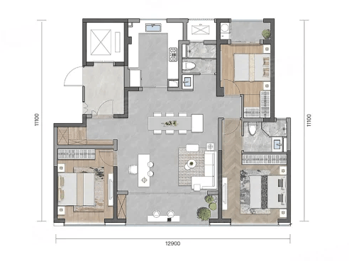3室2厅2卫1厨, 111平米