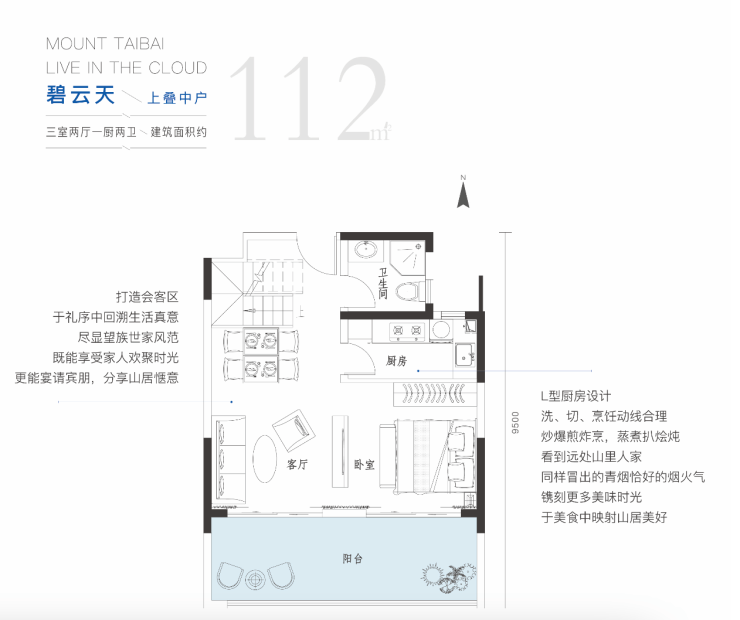 【碧云天】上叠中户 · 三室两厅一厨两卫 · 建筑面积约112㎡