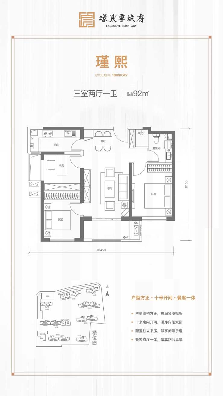 璟宸尊域府极致三居,让每一平米的定位和设计,都竭力贴合于居住者的习惯,纯板通透,动静分离,让居者享受优质户型的生活之便。