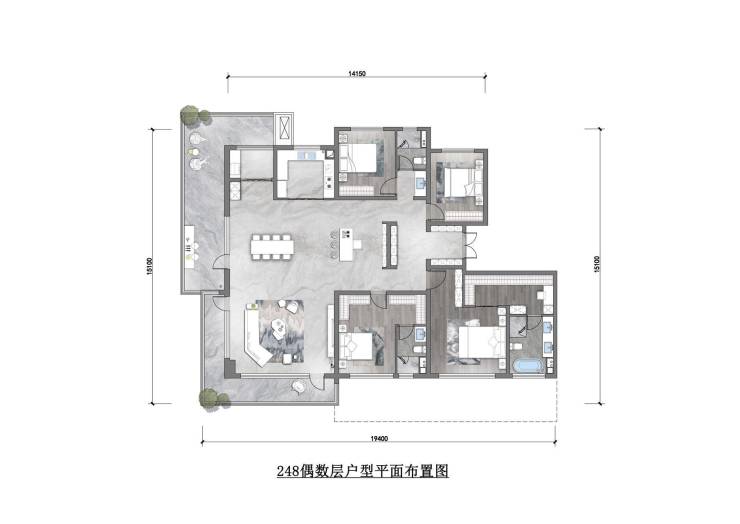 248平四房两厅三卫,19.4米大面宽,南向双套卧,三明卫的户型设计,主卧同样也设计有步入式衣橱,让您生活满满的仪式感。