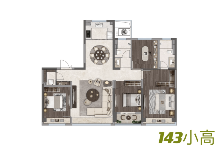 产品面积:小高层143㎡ 洋房190㎡ 顶跃300㎡