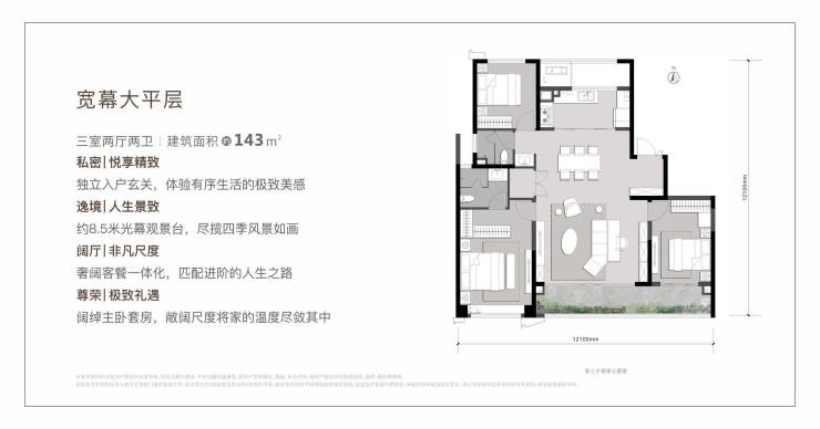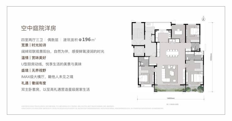 面积区间:规划约128-178㎡宽幕大平层 、约143-235㎡空中庭院洋房