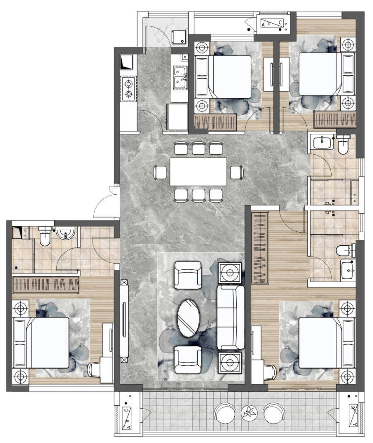 建面约123-188㎡宽境舒居,2T2、2T3梯户比,全系户型朝南开间,室内空间舒朗开阔。南向落地观景窗,以宽奢场域的极致瞰景视野,重塑纯粹生活想象。