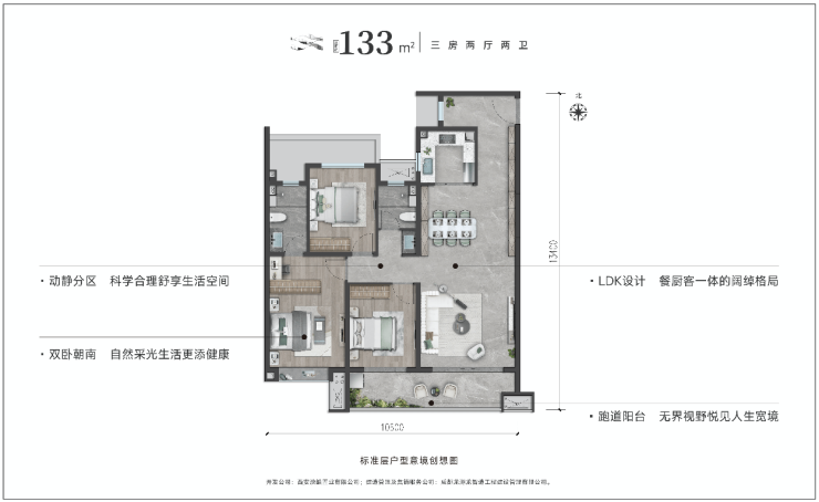 ►万象之天——建筑面积约133㎡三房两厅两卫——