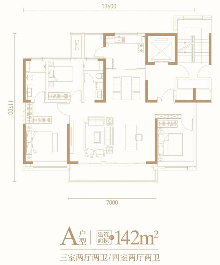 5.面积区间:约128-142㎡