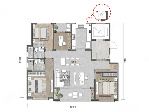 3室2厅2卫1厨, 111平米