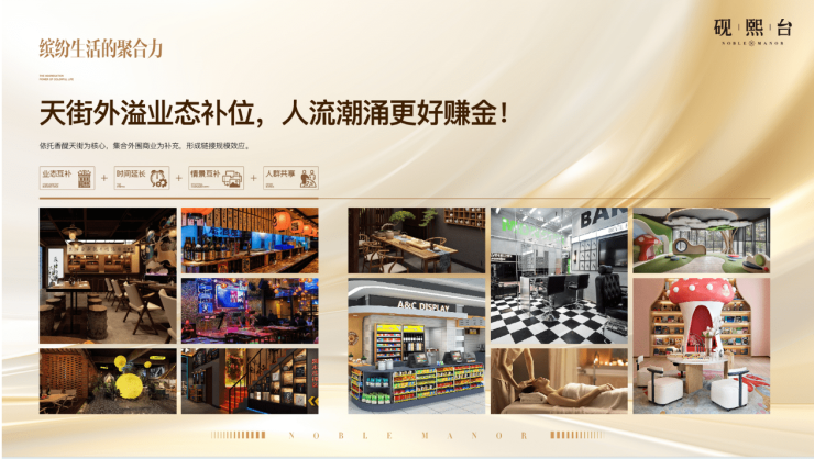 托香醍天街为核心,集合外围商业为补充,形成链接规模效应业态互补+时间延长+情景互补+人群