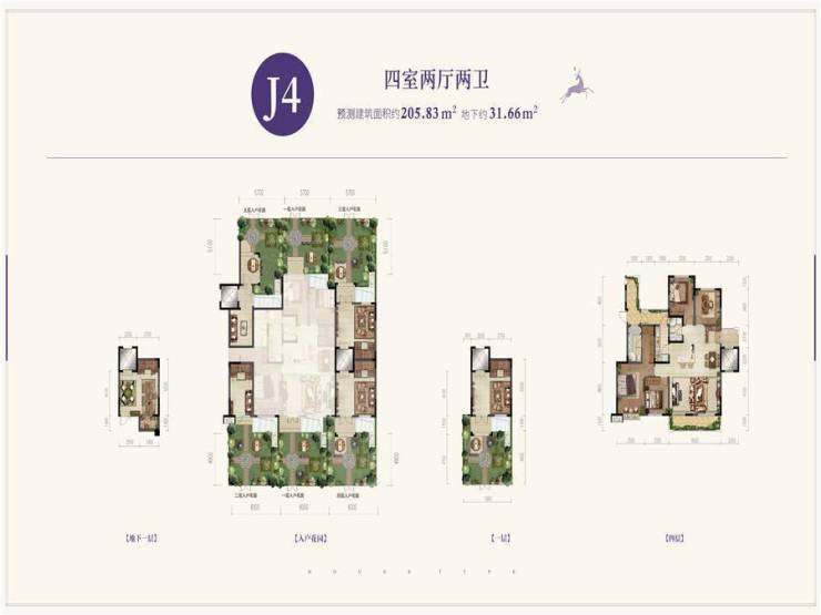 白鹿溪谷,楼盘在售123.82~265.54㎡户型,其中4室2厅2卫205.83㎡。户型建筑面积达205.83平米,上下共四层,私密性和舒适性具备;赠送面积多,空间感极强,整体可利用度高。3、4F叠院产品拥有一层私家独立花园,并通过花园内部独立电梯入户 白鹿溪谷尚有4室2厅2卫,,更多细节请前往楼盘详情页查看。
