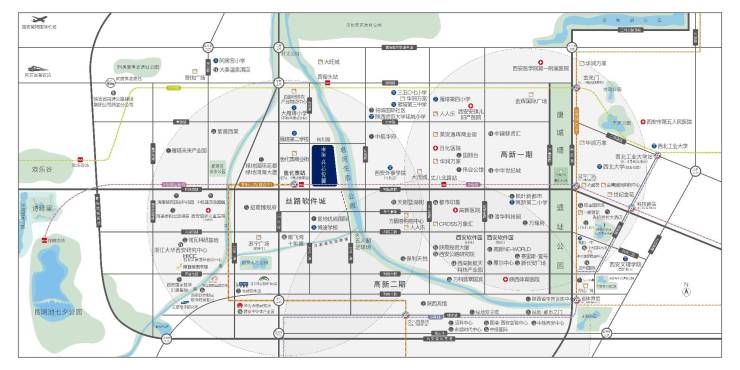 项目位于科技路黄金主轴之上,项目东侧是高新一期核心成熟配套,15min生活圈优享西安顶级资源配套。项目西南侧,一路之隔为高新区发展潜力方向——丝路软件城,该区域定位万亿智慧产业高地,聚集西安90%以上的软件企业,华为、阿里巴巴、三星等世界500强企业30余家,是当仁不让的产业龙头。