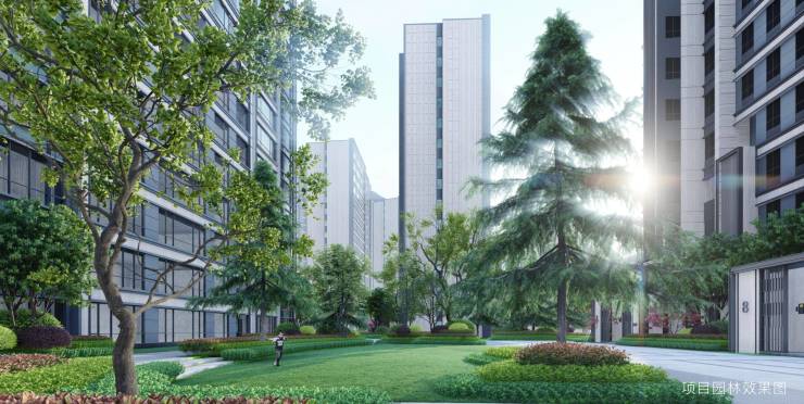 灞河壹號以“融居入景 揽景入宅”的设计理念打造沉浸式生态住区。同时以北高南低山峦走势赋形建筑,梯度式布局建筑,营造户户南向无遮挡的观景视野。