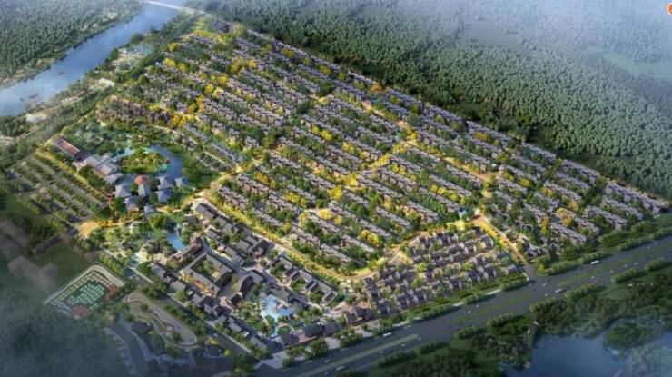 项目总占地1800亩,东侧一地块约520亩,由200亩的商业配套及350多亩温泉叠拼组成。河西侧是二地块,约1300亩地涵盖住宅、商业以及一个 380多亩的业主众筹农场组成,也是儿童的自然教育基地