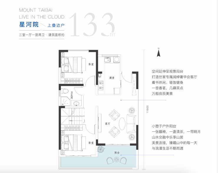 奢阔赠送:太白山同级别产品赠送庭院、地下室,底跃露台面积最大。50平米~220平米