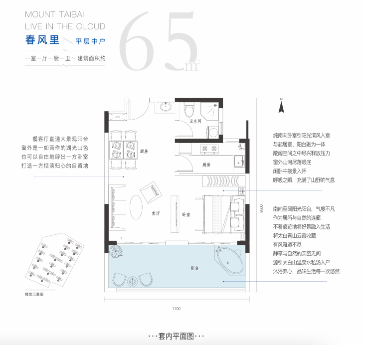 【春风里】平层中户 · 一室一厅一厨一卫 · 建筑面积约65㎡