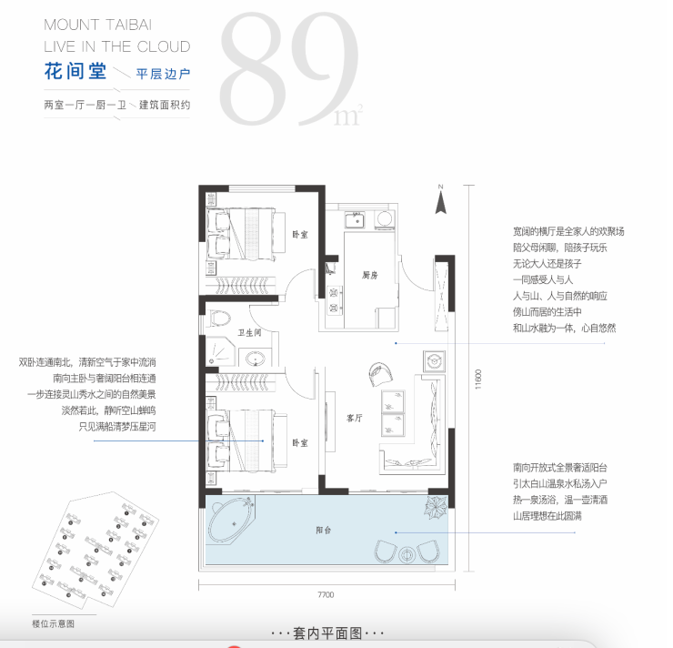 巨幕阳台:太白山同类型产品最大尺寸阳台,进深2.4米,开间7.1米~7.7米