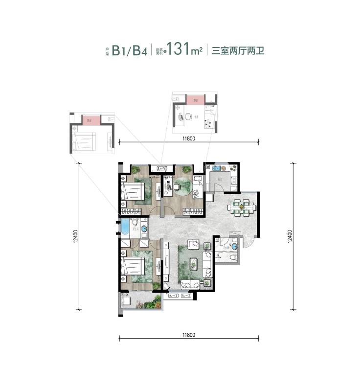 【产品面积】约58-135㎡,一室-四室