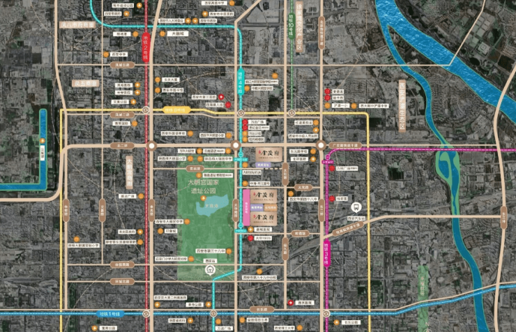 ▲商业配套:大明宫万达广场、四海唐人街、大华1935、世纪金花、大明宫钻石店、百寰国际等。