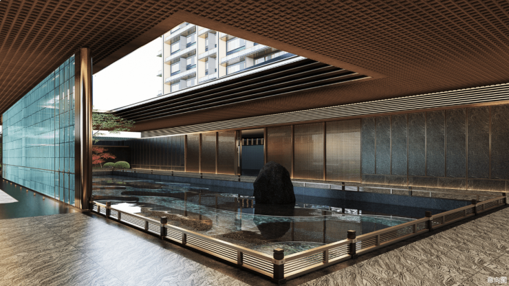 最梦幻丨Prada绿液态水波纹大理石铺底 一池青绿四季流动将传统“四水归堂”绽放出新的梦幻,采用Prada绿液态大理石铺底在青绿石材上雕刻出水波纹,无论何时皆有“水景”可赏且琉璃倒映与月光倒映日夜交相辉映,让归家离家皆有景可观