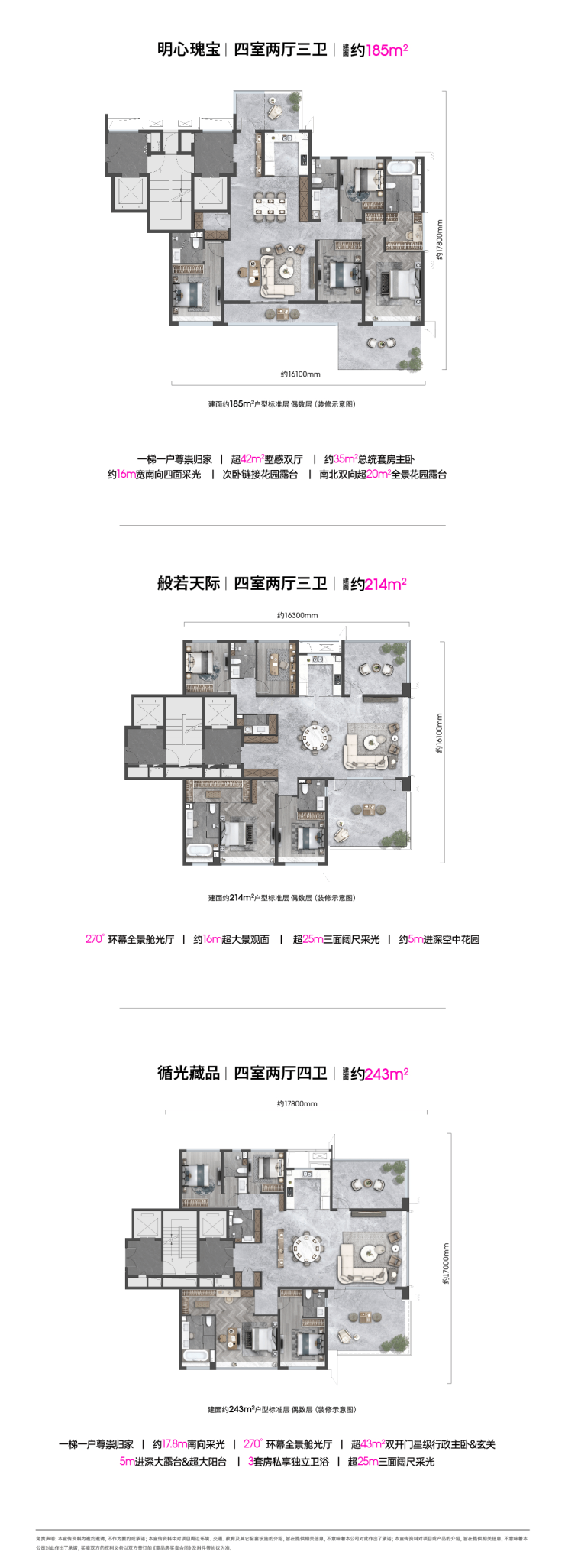 光感之美向内延伸,秩序渐进诗意融合。意大利维纳多石材重构极核哲学,重构仪式感长廊序列,连接双下层庭院。