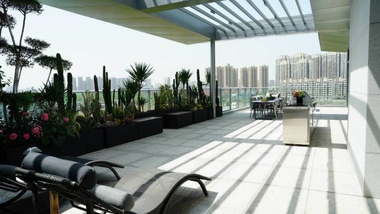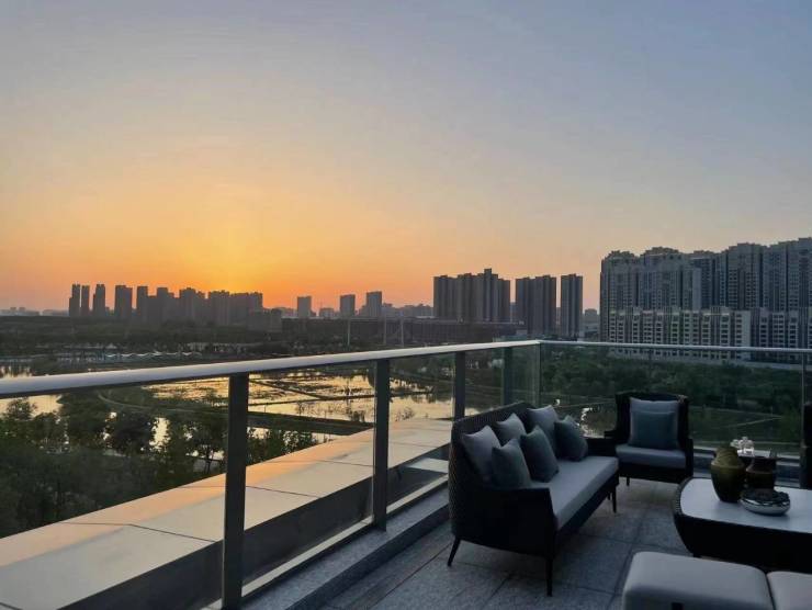 项目整体规划因地制宜,借助长安公园地块天然优势将建筑群落斜竖排布,依湖而建,营造四层低密大境