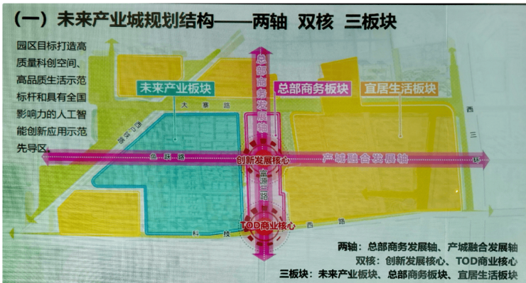 三板块:未来产业板块、总部商务版块、宜居生活板块