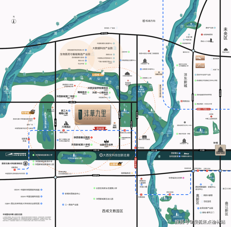 ◎【沣西新城—西部科创特区】沣西新城对标美国硅谷发展模式,依托秦创原创新驱动平台,打造西部科技创新港、西部云谷、翱翔小镇等智慧产业基地,拥有19年全龄名校教育、约万亩生态公园、5号线、11号线便捷交通、丝路欢乐世界等多元配套,以科创引领,打造高端生态居住领地。