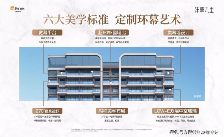 ◎【270°弧形类幕墙 超广角环幕视野】遵循西咸住宅建筑品质A级标准,270°环幕视野,超50%窗墙比,以时尚的类幕墙构造、大面积玻璃进行曲线弧度处理,打造极简风格的流线艺术建筑。