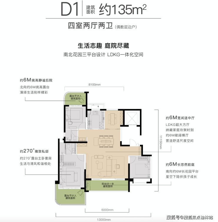 【项目特色】:西咸建筑品质A级标准,270°环幕建筑、约6米挑空双露台、LDKG一体化共享空间