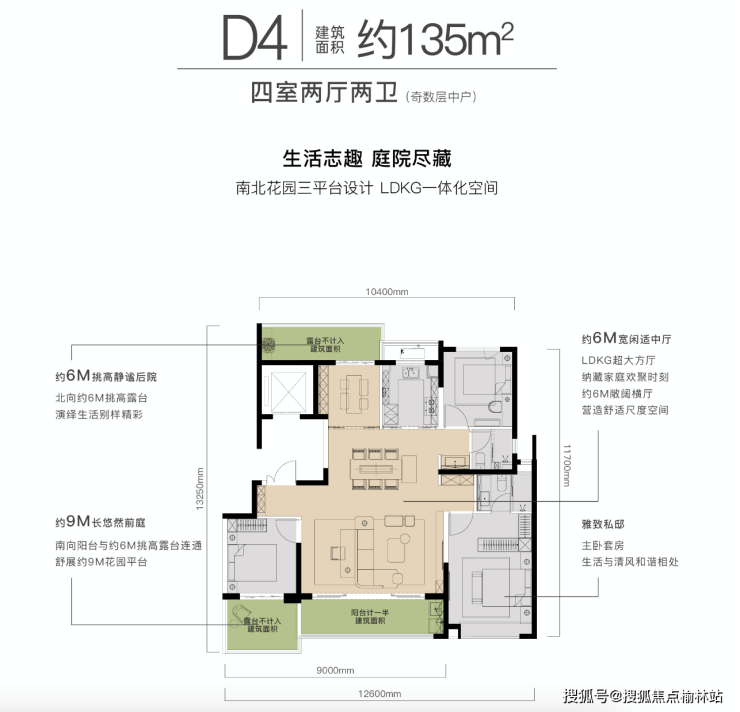 ◎6号楼【四室两厅两卫 | 建筑面积约135㎡】(奇数层中户)