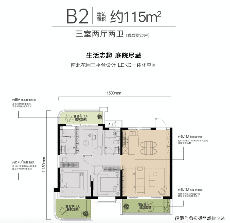 ◎2号楼【三室两厅两卫 | 建筑面积约115㎡】(偶数层边户)