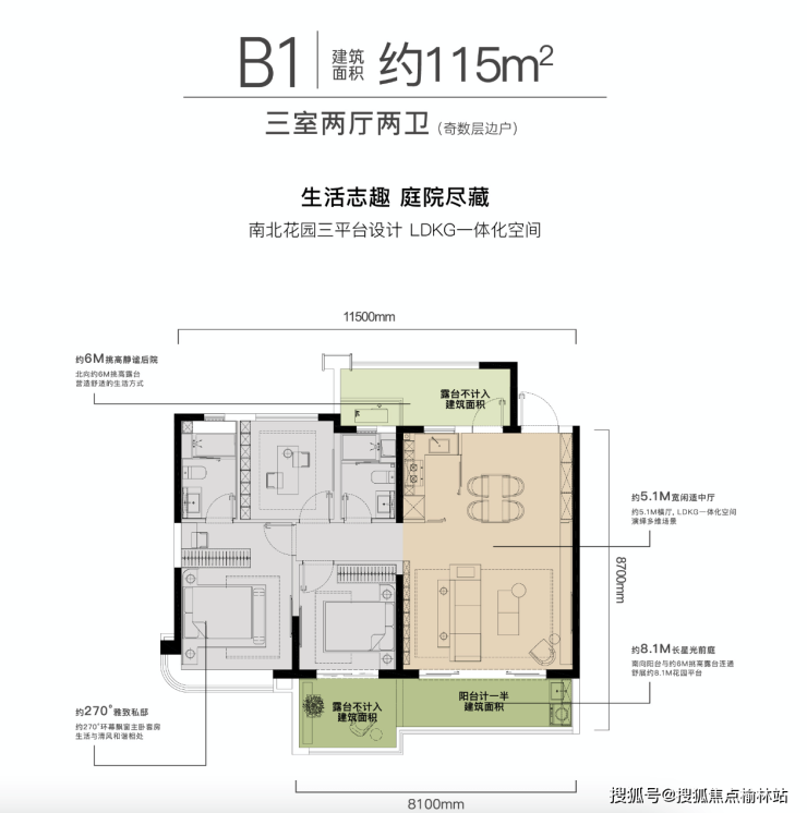 ◎2号楼【三室两厅两卫 | 建筑面积约115㎡】(奇数层边户)