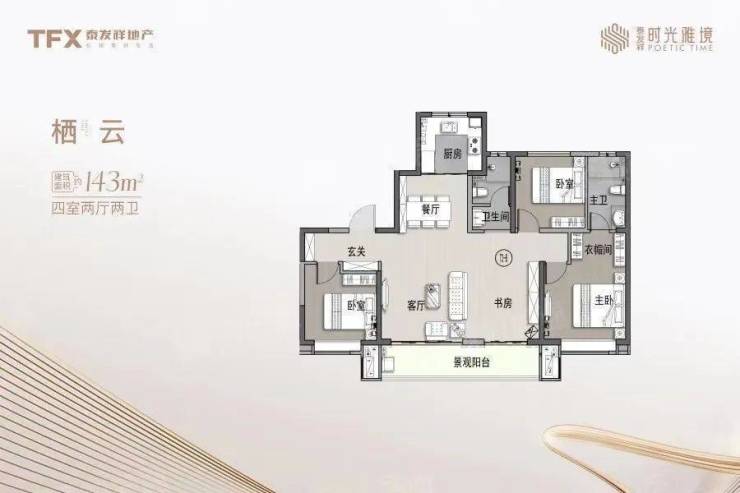 产品上,泰发祥有品质府系、自然云系、艺术境系、城市高定(如泰发祥·檀府)等四大产品系。而泰发祥时光雅境在产品上采用了“艺术境系”,为建筑赋予美学、艺术属性,以更舒适自在的居住体验为主,打造城市高端改善项目。
