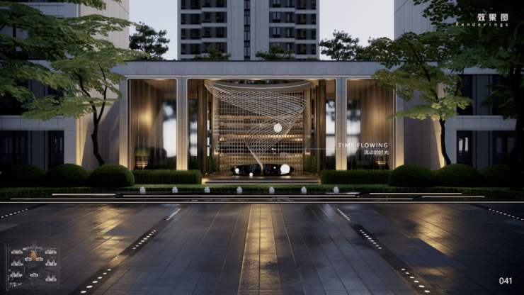 除了标配的公建化立面之外,还打造了极具仪式感的逐光礼仪归家轴,从隐奢风格的归家大门开始,在空间的层层递进中,每一步都是不同的风景,视觉感官从归家的尊崇荣耀逐渐向松弛过渡,在周边景观的不断变化中,仿佛在无声提醒:到家了,是时候让心情和节奏慢下来。
